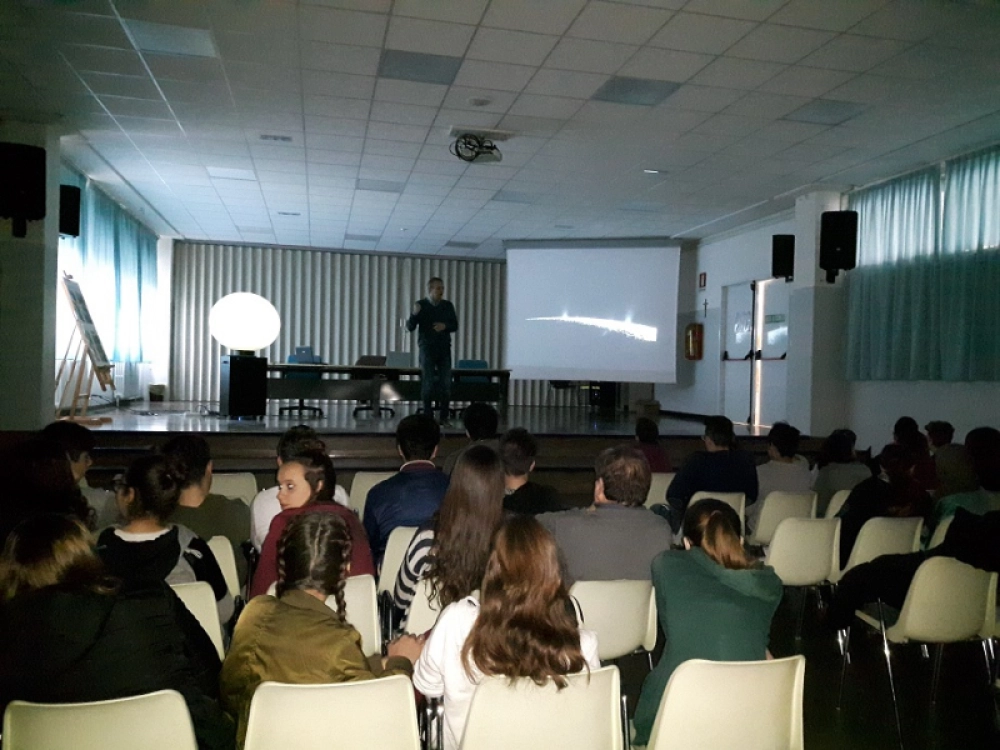 Primo momento. Fase espositiva-illustrativa in Aula Magna con esperti della Associazione Astrofili di Legnago.